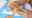 Tauche die woody duo Spitze in ein Glas mit Wasser und male die Noppenfolie (auf der unregelmäßigen Seite) an. Drücke die Folie mit der Farbe nach unten auf den Dino-Körper, damit eine Art Panzer entsteht.