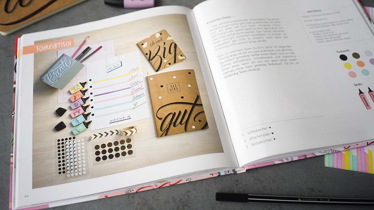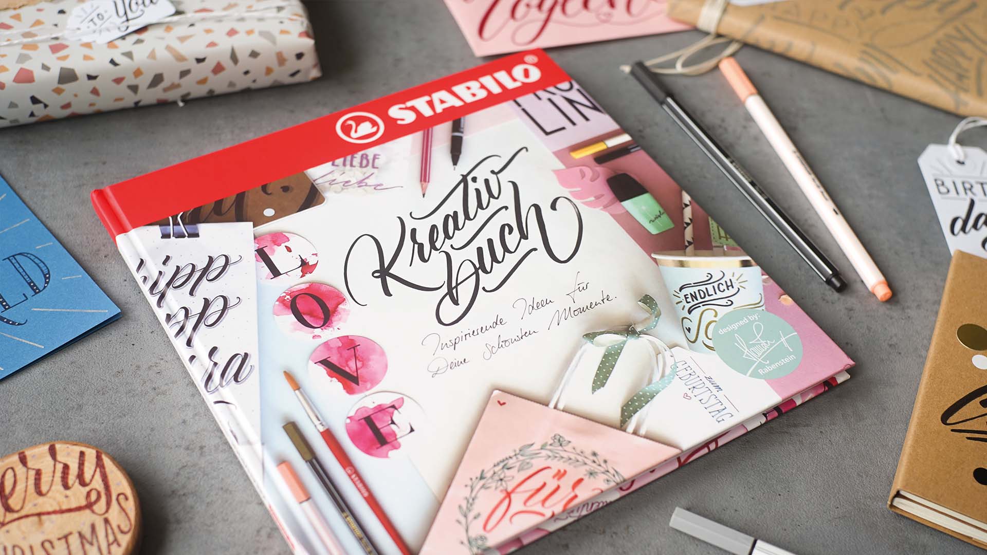 Das STABILO Kreativbuch beinhaltet 32 Zeitraffer-Videos (abrufbar über QR-Codes), die Schritt für Schritt zeigen, wie die kreativen Projekte realisiert werden. Hier sind nur zwei Beispiele: Wie du eine wunderschöne, individuelle Papierbox erstellen kannst und wie du eine beindruckende LOVE-Girlande mit tollen Aquarelleffekten bastelst.