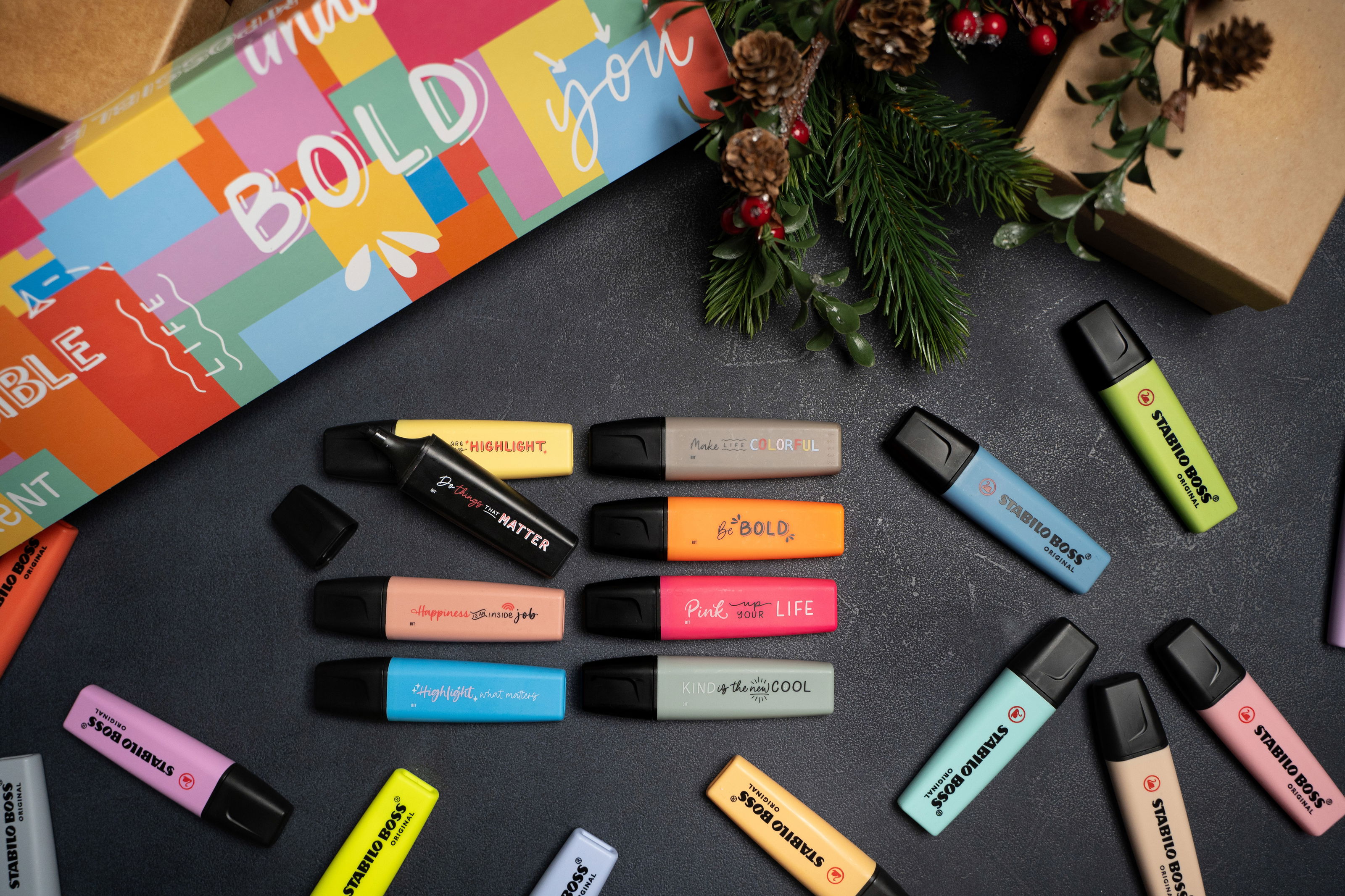 Exklusives 24er Textmarker Geschenkset - STABILO BOSS ORIGINAL mit aufgedruckten, motivierenden Sprüchen