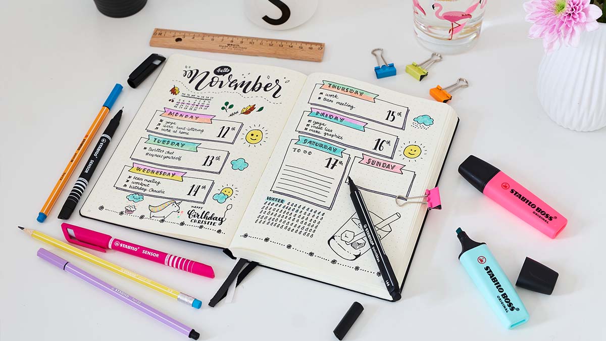 Une structure bien définie est utile comme cadre de base pour concevoir votre journal créatif. Vous ne savez pas par quoi commencer ? STABILO vous aide à sauter le pas avec cette structure de base à personnaliser en fonction de vos objectifs.