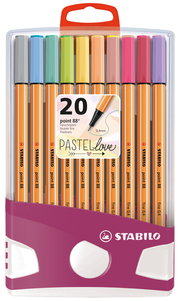 Feutre fin STABILO point 88 en PastelParade de 20. Retrouvez le détail des 20 couleurs dans la rubrique caractéristiques.