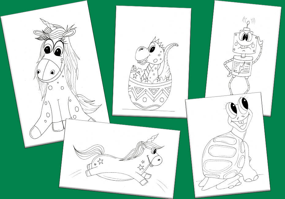 O PDF contém robôs, girafas, cavalos, dinossauros, unicórnios, elefantes, tubarões e dragões!