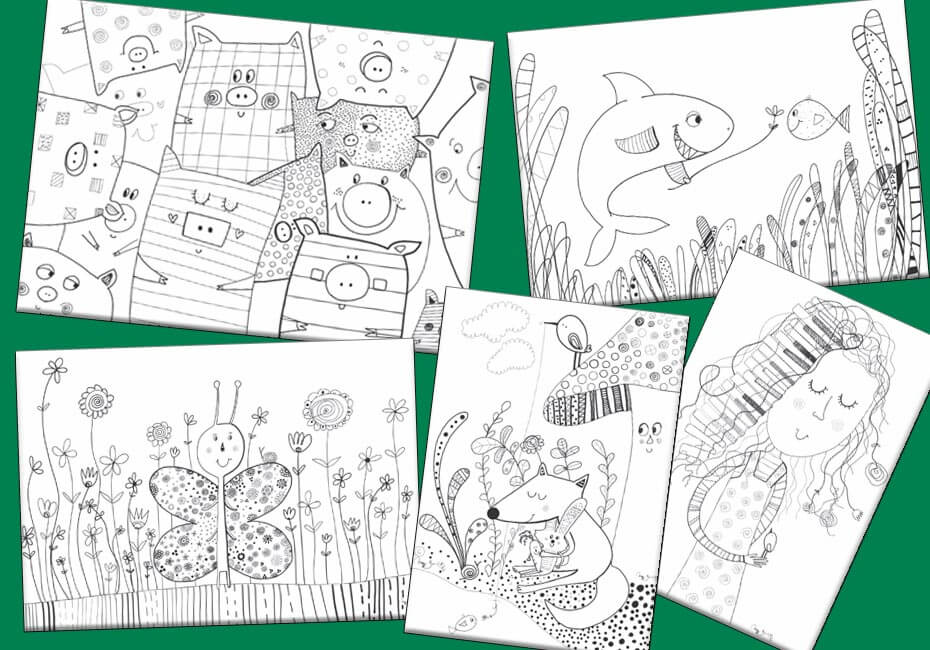 Ela disponibilizou 36 lindos modelos de desenho de animais e de situações do dia a dia.
