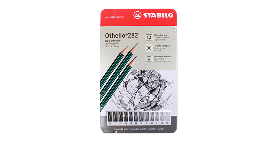 Doze graduações do Othello: 8B, 7B, 6B, 5B, 4B, 3B, 2B, B, HB, F, H, 2H.