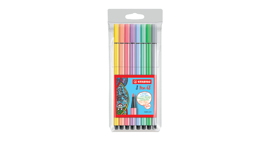 Vinte cores de Pen 68: 13, 32, 36, 41, 43, 44, 45, 46, 48, 50, 51, 54, 55, 56, 57, 58, 63, 89, 94, 96.