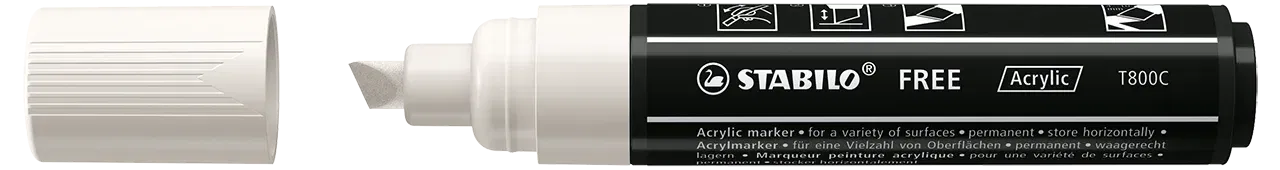 Der STABILO FREE Acrylic Marker sollte nicht länger als ca. 10 Minuten ohne Kappe offen liegen.