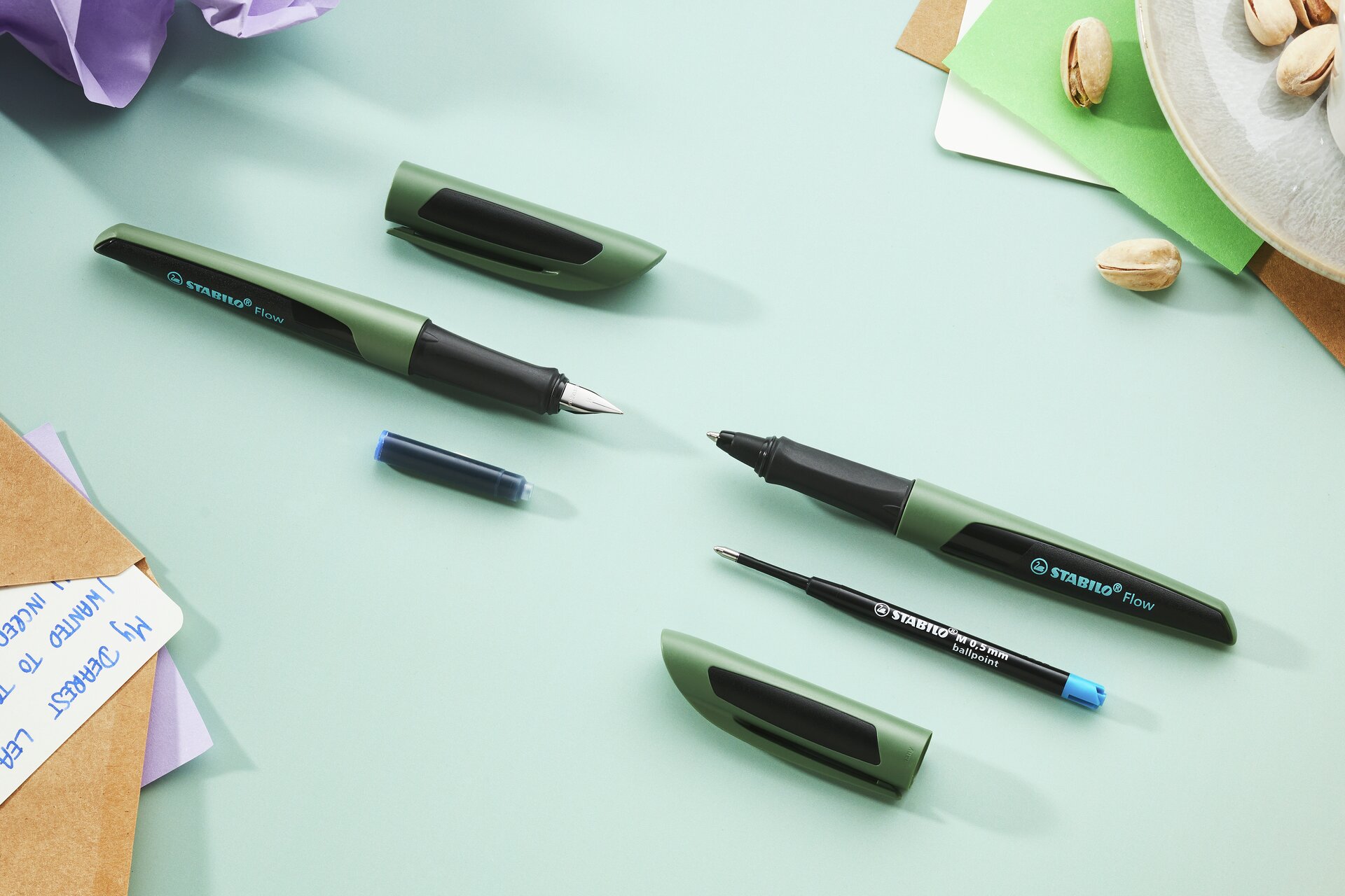 STABILO Flow est un stylo-bille pointe moyenne au tracé de 0,5 mm d'épaisseur. Conçu pour durer avec sa grande autonomie de 3,2 km d’écriture, il est rechargeable avec la recharge STABILO. Fabriqué en Allemagne, STABILO Flow séduit par son design, son exceptionnelle qualité de glisse, la fluidité de son tracé et le confort de son grip ergonomique. Equipé d'un clip, il s'emporte facilement partout. Pour les documents officiels, son encre bleue est infalsifiable.