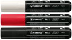 The STABILO FREE Acrylic Marker gives you free rein to your creative ideas in many ways. Personalize surfaces, try it yourself, and leave your comfort zone. You make the rules. Whether on paper, cardboard, plastic, canvas, stone, synthetic leather or more. The T800C comes with a broad chisle tip with 4-10 mm line width, ideal for large areas and bold letters. The marker is easy to use: 1) Shake the closed pen vigorously for 30 seconds with the cap closed until the balls it contains move freely. This distributes the pigments evenly. 2) Press the tip 1-2 times on separate paper and allow paint to flow into the tip. 3) Let's go, anything is possible. The versatile acrylic marker impresses with its striking STABILO design and proven STABILO quality.