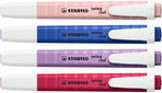 The STABILO swing cool NatureCOLORS Wildflower highlighter is a writing tool ideal for both classic highlighting as well as creative uses. For those wishing to integrate the trendy shades from the fields of interior and fashion design into their stationery, the STABILO swing cool NatureCOLORS Wildflower is the perfect selection. The colors ultramarine, burgundy, grey violet, and blush are inspired by the beauty of nature, adding modern, lively touch to any professional or artistic endeavor. With their slim shape and the practical clip, they are perfect for on-the-go. Thanks to STABILO's innovative Anti-Dry-Out Technology, this pen can be left uncapped for up to 4 hours without drying. With its high-quality water-based ink, it flows smoothly on the page, making it an excellent choice for sketching, note-taking, or enhancing your artwork with creative details. With line widths of 1 mm and 4 mm, it offers ample flexibility for underlining and highlighting, as well as for various artistic applications, ensuring every line is both vibrant and accurate. Whether you’re a student, creative, or professional, this highlighter will become an indispensable part of your professional or creative work.