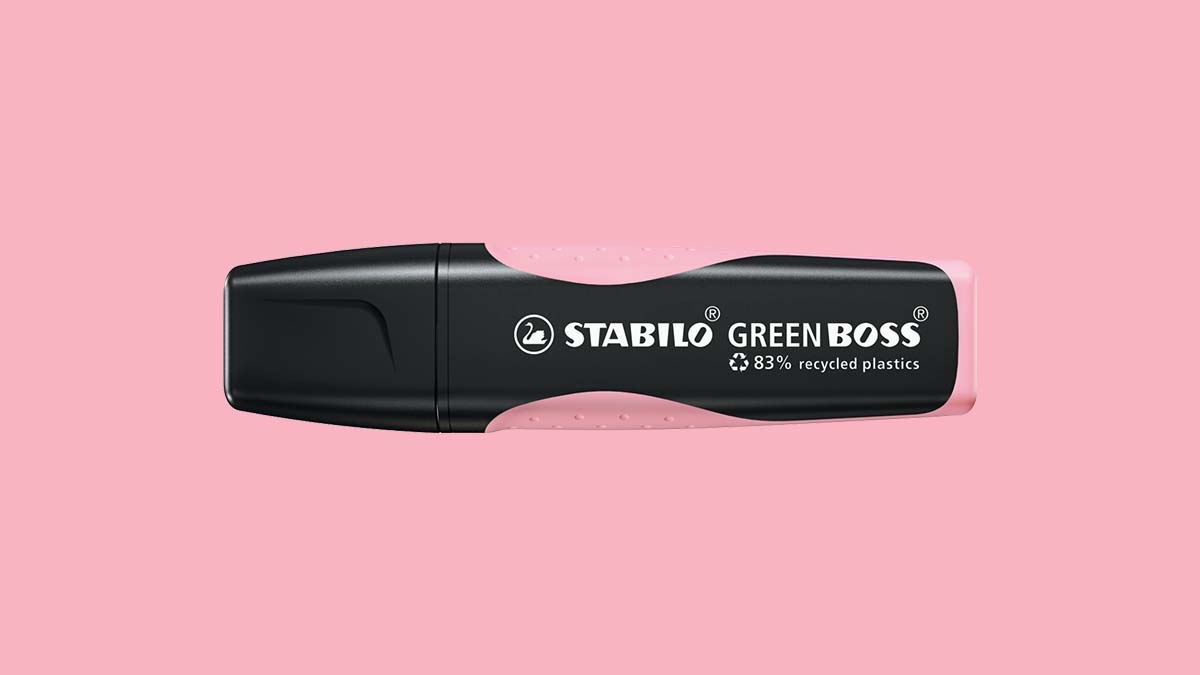 STABILO GREEN BOSS Pastel kombinuje trendy s kvalitou a udržitelností a je ideální volbou pro všechny zákazníky, kteří dbají na životní prostředí. Vyrobeno z 83 % z recyklovaného plastu, který šetří přírodní zdroje. STABILO GREEN BOSS Pastel je k dispozici ve čtyřech jemných pastelových barvách, které do vašich poznámek vnesou závan čerstvého vzduchu. Díky jedinečné technologii STABILO Anti-Dry-Out přitáhne pozornost k vaší práci. Může zůstat otevřený bez uzávěru až 4 hodiny, aniž by vyschl. Díky klínovitému hrotu dokáže vyznačovat tenké (2 mm) i tlusté (5 mm) čáry, což vám umožní přesně zvýraznit velké bloky textu i drobné písmo.