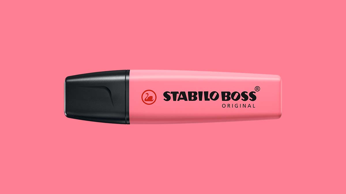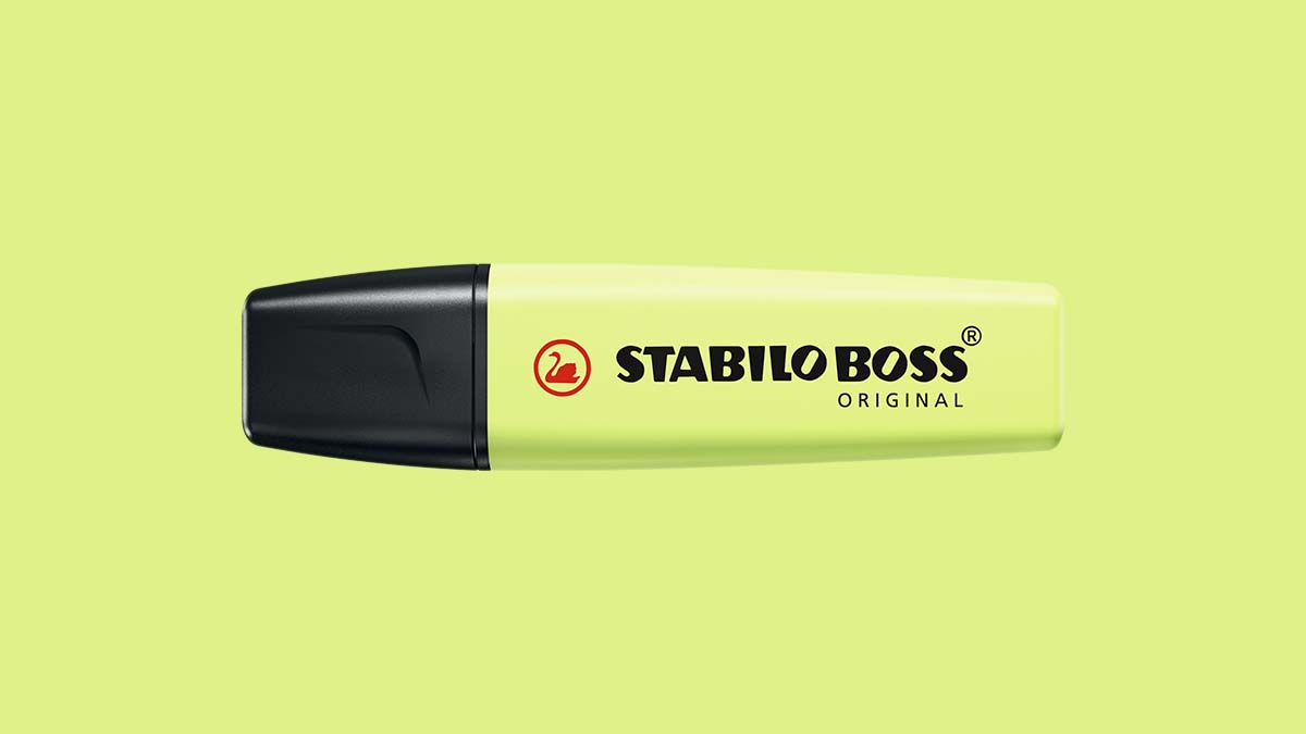 Růžová nebo neonově růžová? Mátový nádech nebo neonově zelená? Nádech tyrkysové nebo neonově modré? Musí být text vždy zvýrazněn fluorescenčními barvami? Vůbec ne! Pokud chcete projevit smysl pro trendy a vyznačit se nenápadně, zvolte zvýrazňovač STABILO BOSS ORIGINAL v pastelových odstínech. Patentovaná technologie STABILO Anti-Dry-Out nabízí čtyřhodinovou ochranu proti vysychání a zajišťuje soustředěnou práci bez přestávky. Díky klínovitému hrotu a dvěma šířkám čáry si bez něj lze jen těžko představit pracovní stoly a již více než 50 let poskytuje nepostradatelné služby ve školách, na univerzitách, v kancelářích i domácnostech.