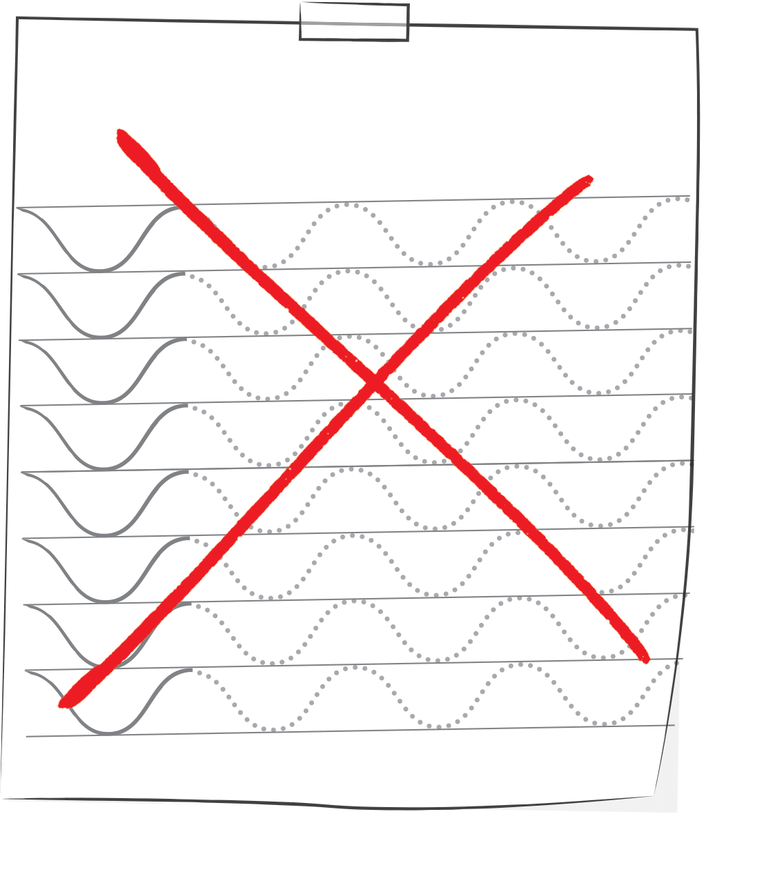 Solange Kinder gestrichelte Linien exakt nachfahren, können sie die für das Schreiben lernen so wichtigen Bewegungsabläufe und freien Schwünge nicht trainieren. Dies führt später häufig zu einer verkrampften, langsamen und keiner flüssigen Schreibbewegung.