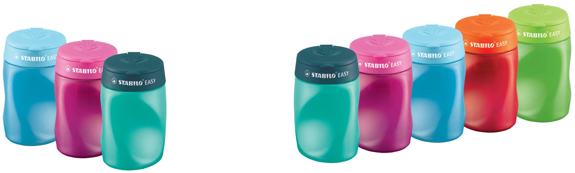 Der ergonomische Dosenspitzer STABILO EASYsharpener für Links- und Rechtshänder:innen in 5 Designs macht stumpfe Stifte im Handumdrehen wieder spitz. Nicht nur sein Design ist außergewöhnlich. Die innovativen Griffmulden speziell für Links- oder Rechtshänder:innen bieten eine optimale Handhaltung. Er spitzt drei verschiedene Minendurchmesser (Druckbleistifte bis 3 mm, dünne Holzstifte bis 7,5 mm, dicke Holzstifte bis 10 mm), verschließt dicht und hat sogar ein Feld zur Namensbeschriftung.