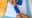 Schneide den Pappteller in der Mitte durch und lege eine Hälfte zur Seite. Male die andere Hälfte vollflächig an. Trage dazu gelbe und orange Farbe mit der woody duo Spitze auf die Rückseite des Tellers (raue Fläche) auf und vermale sie mit Pinsel und Wasser.