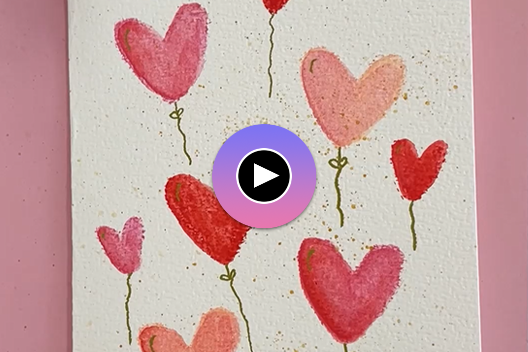 Schritt 3: Gehe mit einem feuchten Pinsel über die gemalten Herzen, um die Farben zu verwischen und einen sanften Aquarell-Effekt zu erzielen.