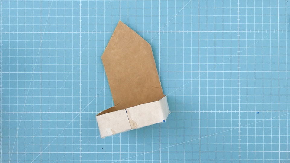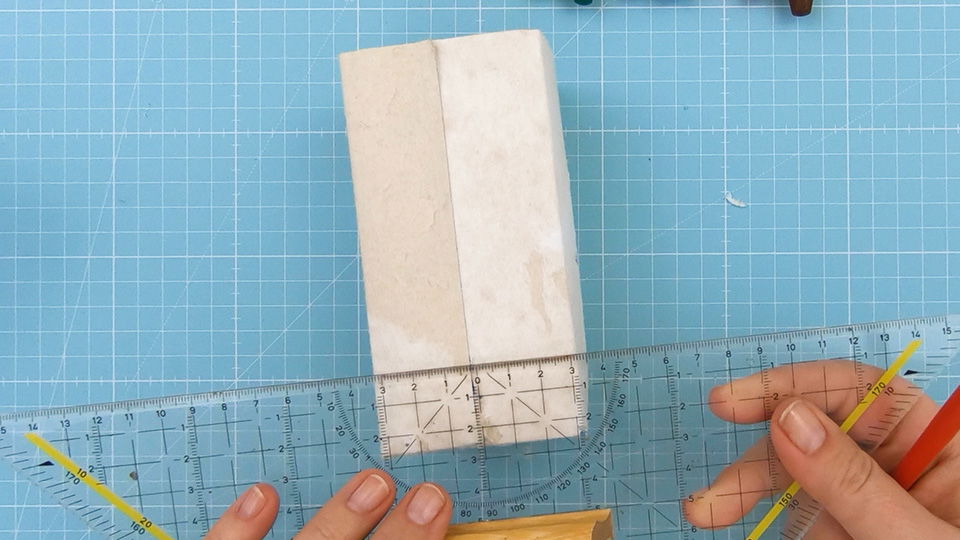 Schneide die Rückseite spitz zu. Diese Form ergibt das Dach des Hauses. Du kannst es nach Belieben mehr oder weniger spitz machen.