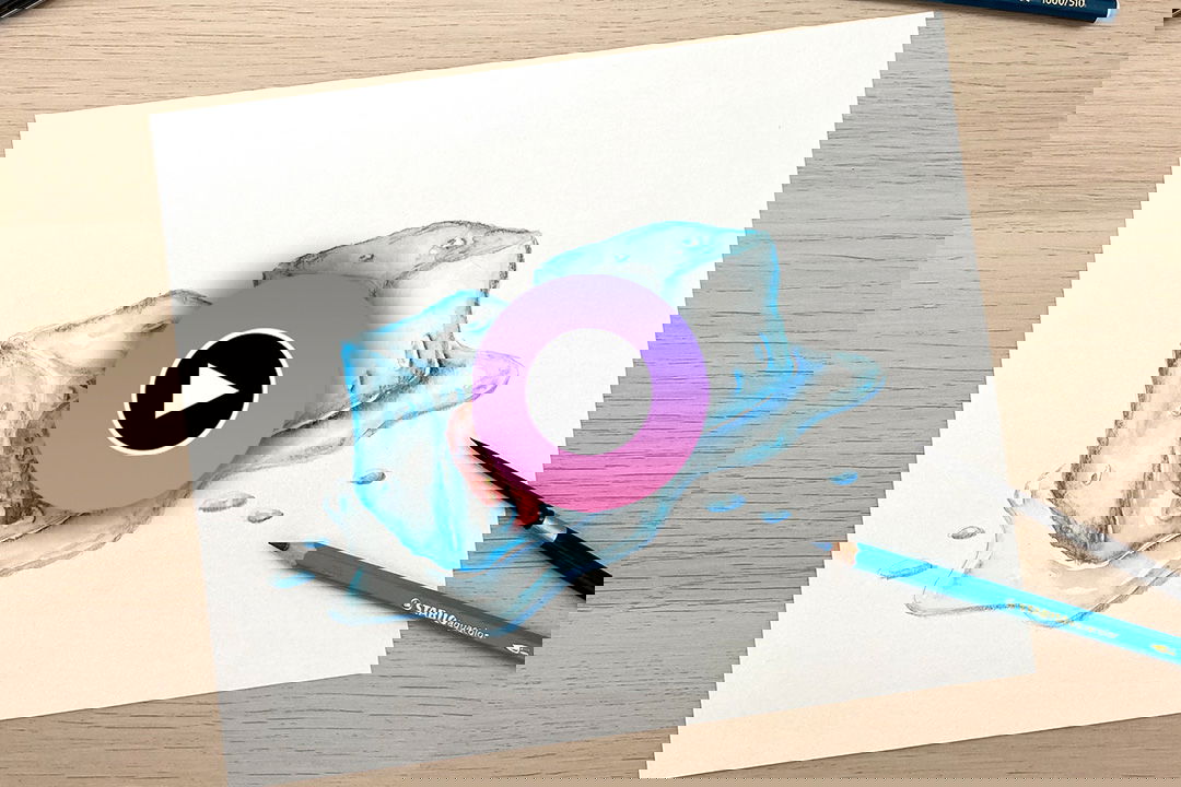 Schritt 5: Jetzt folgt der Eiswürfel. Konturiert mit einer blauen Farbe die Kanten des Eiswürfels und vermalt anschließend ebenfalls die aufgetragene Farbe mit einem angefeuchtetem Pinsel.