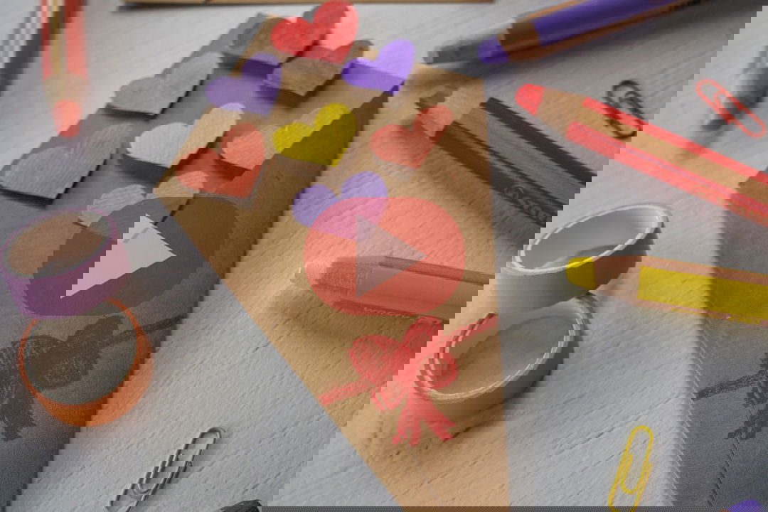 Schritt 9: Jetzt am Ende fehlen nur noch die Herzen. Klebe diese auf die obere Hälfte der Tüte, sodass es so aussieht, als wäre sie mit Liebe nur so vollgestopft.