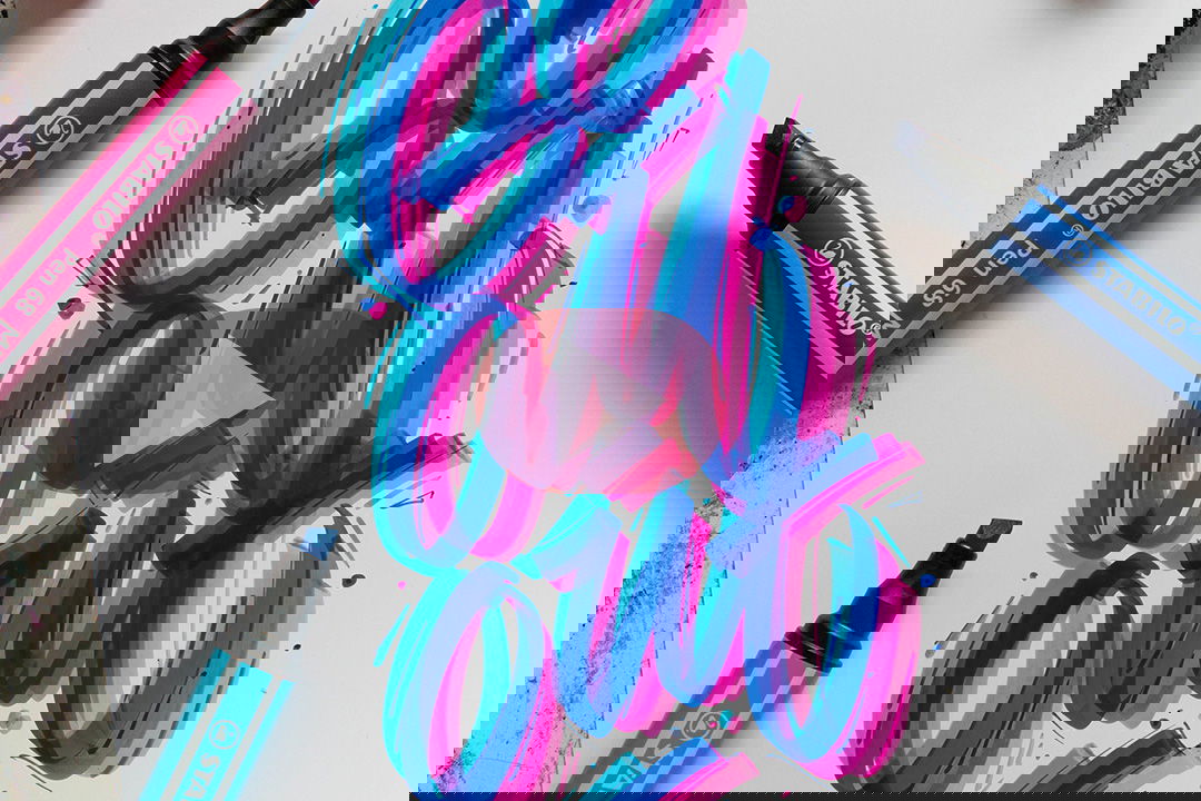 Schritt 3: Ergänzt nun wie im Video mit einem pinken Pen 68 MAX die Buchstaben. Hierbei ist zwar keine großartige Präzision gefragt, aber dennoch sollte die Schrift sehr nah bei dem ursprünglichen Schriftbild liegen.