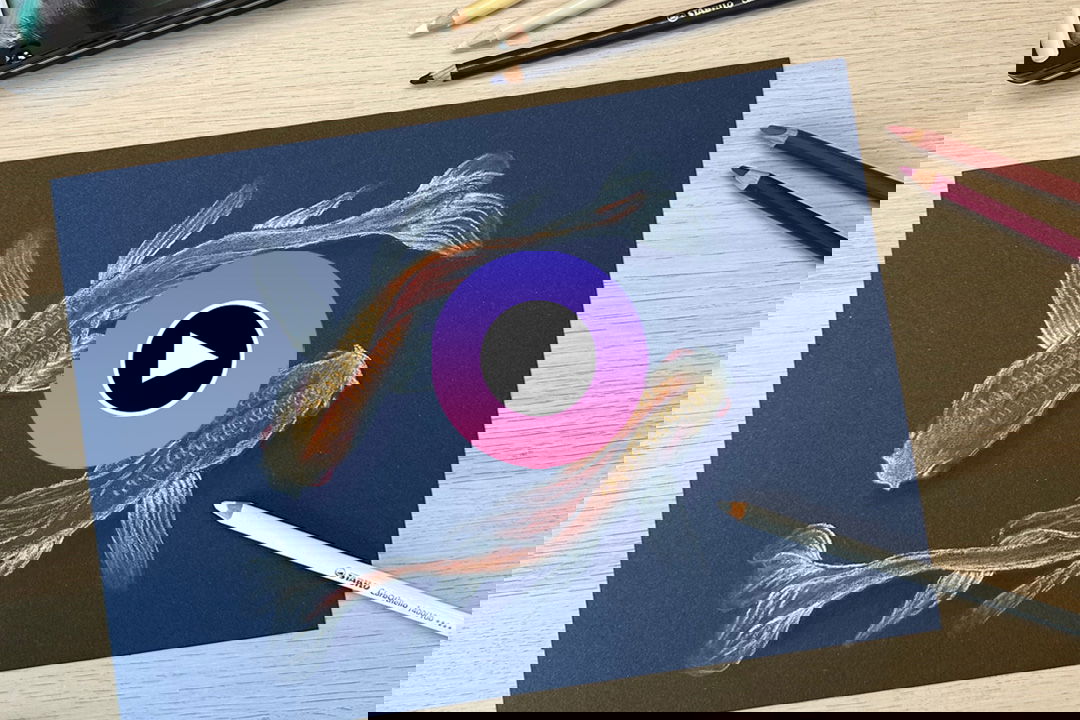 Du benötigst: Schwarzes Papier und den  STABILO CarbOthello in Weiß, Dunkelblau und verschiedenen Rot-, Orange- & Gelbtönen.