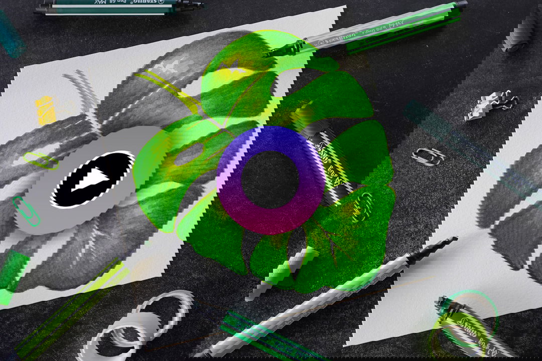 Schritt 2: Nun folgt die Farbe. Beginnt dafür mit einem hellgrünen STABILO Pen 68 MAX und malt das Blatt, wie im Video an.