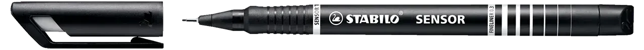 Der dünnste Fineliner von STABILO ist der SENSOR fine. Er hat eine Strichstärke von gerade einmal 0,3 mm und ist damit für besonders feines Zeichnen und Schreiben (etwa für Korrekturen in enge Zwischenräume) geeignet.