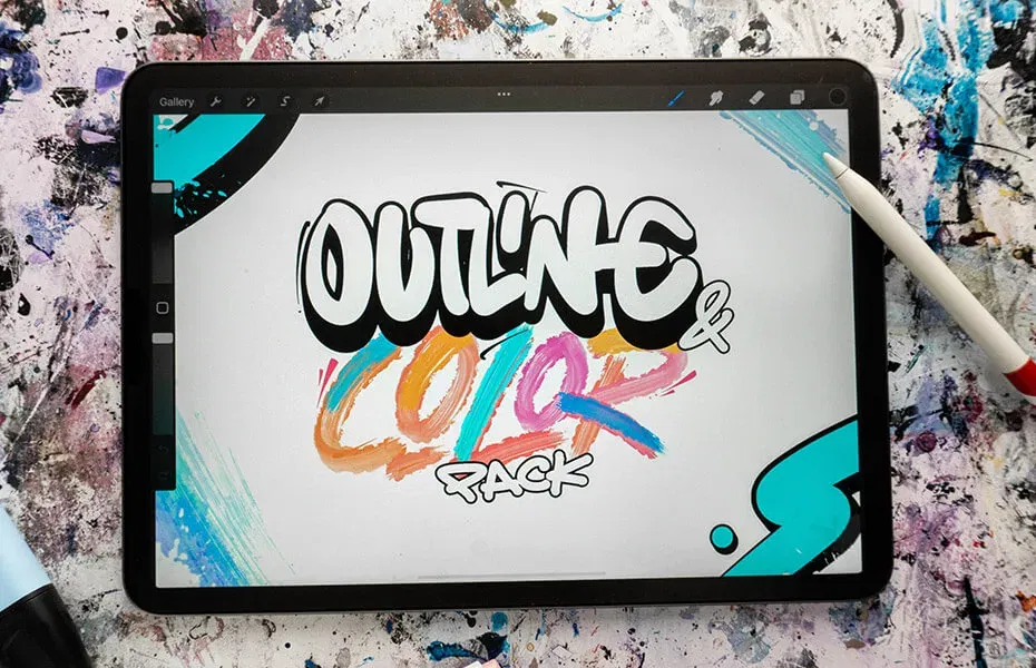 Ce pack est idéal pour les amateurs de lettering et de street art ! Il contient de nombreuses brushes qui permettent de concevoir des lettres avec de nombreux effets. Les pleins et les contours des lettres peuvent être réalisés en deux couleurs, ensemble dans une seule et même étape. Le pack contient aussi, entre autres, des “Stamp Brushes” pour créer des effets, des structures et des arrière-plans dans un style graffiti.