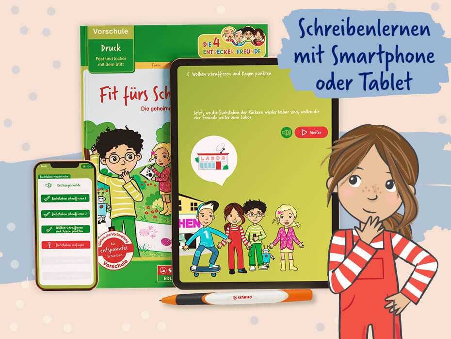 Das Schreibenlernen auf Papier wird kombiniert mit einer digitalen Erlebniswelt.
