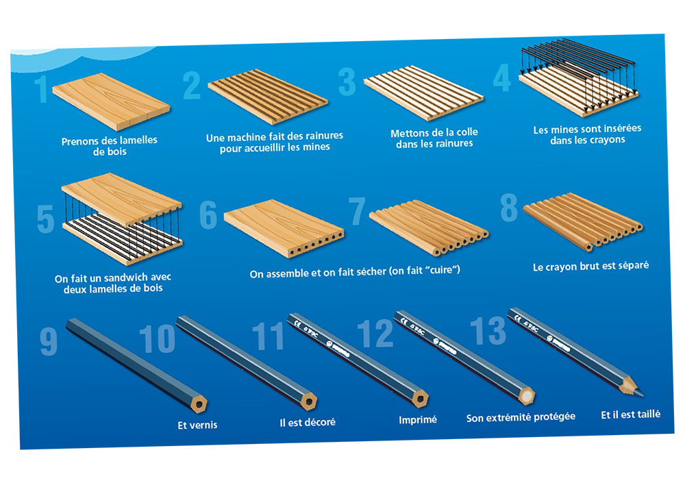La matière utilisée pour réaliser les mines du crayon est le graphite, plus précisément la plombagine. La plombagine est une forme cristalline naturelle du carbone : c’est un minerai. Son nom est trompeur, il n’y a pas de plomb dans les crayons graphite STABILO. Pour la petite histoire, le carbone peut prendre plusieurs formes... cela peut être du charbon ou un diamant ! Pour lui conférer plus ou moins de tendresse et de « gras », les mines contiennent de l’argile. Plus la mine est grasse et plus il y a de graphite.