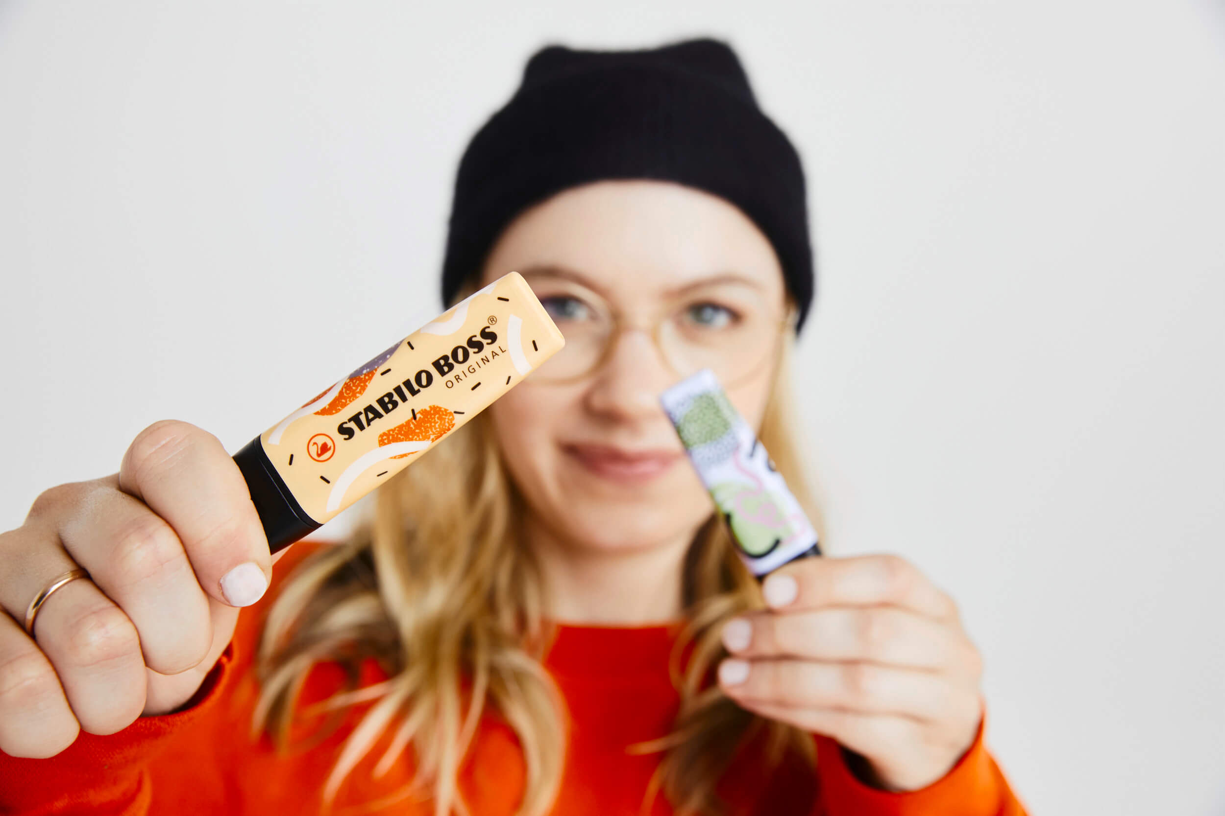 L'artiste Ju Schnee revisite le design du célèbre surligneur STABILO BOSS ORIGINAL ! Désormais, 4 décors différents inspirés de l'univers pop et joyeux de l'artiste autrichienne habillent intégralement le corps du surligneur dans 4 de ses couleurs pastel. Le surligneur STABILO BOSS ORIGINAL by Ju Schnee devient véritable instrument de création artistique, pour surligner bien sûr, mais aussi décorer, imaginer, et vous exprimer comme vous le souhaitez.