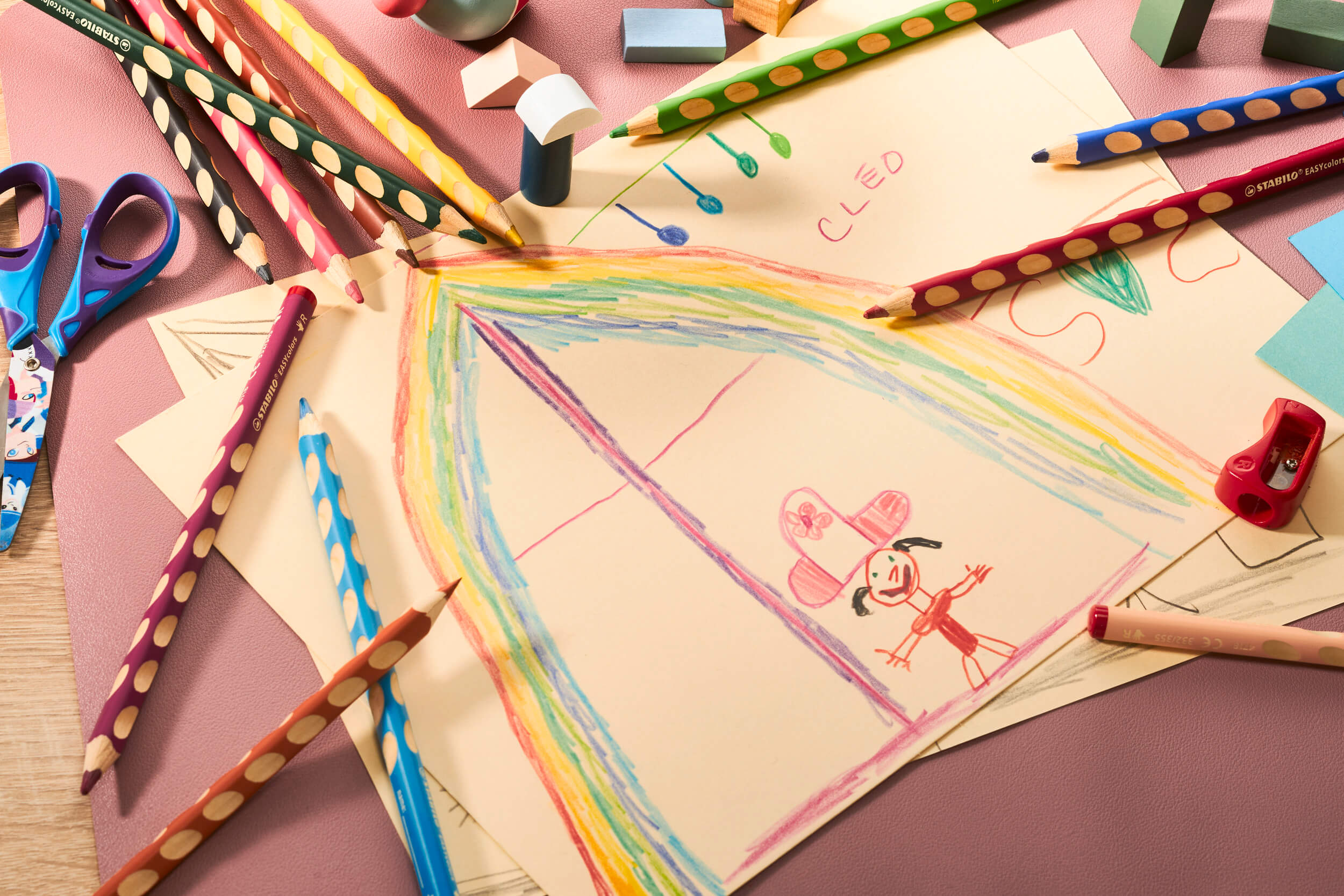 Το πρώτο βήμα για το σωστό κράτημα του μολυβιού, τα εργονομικά χρωματιστά μολύβια STABILO EASYcolors συνδυάζουν εξαιρετικό κράτημα με μοναδική ποιότητα και χρωματική λάμψη. Τα μοναδικά χρωματιστά μολύβια σχεδιάστηκαν ειδικά για αριστερόχειρες ή δεξιόχειρες από την ηλικία των πέντε ετών. Το χαρακτηριστικό τριγωνικό σχήμα και οι εντυπωσιακές, αντιολισθητικές αυλακώσεις λαβής σε όλο το μήκος των μολυβιών STABILO EASYcolors εμποδίζουν τα δάχτυλα να γλιστρούν κατά τη διάρκεια του χρωματισμού και ταυτόχρονα επιτρέπουν την εύρεση της βέλτιστη θέσης κρατήματος του μολυβιού από την αρχή. Τα παιδιά μπορούν να κρατούν το μολύβι στο χέρι τους με χαλαρό τρόπο και να επικεντρώνονται αποκλειστικά στη ζωγραφική τους. Κάθε μολύβι έχει επίσης ένα πεδίο καταγραφής του ονόματος, ώστε να μην χάνεται.