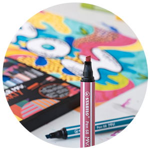 Χρησιμοποιήστε το STABILO Pen 68 MAX για να δημιουργήσετε υπέροχα έργα τέχνης σε χαρτί με ευκολία: Ο μαρκαδόρος είναι τέλειος για έργα τέχνης τοπίων ή πορτρέτων, έντονα και τολμηρά σκίτσα, χρωματισμούς ή γράμματα. Με το υδατοδιαλυτό μελάνι του, η ανάμειξη χρωμάτων με ομοιόμορφες διαβαθμίσεις και μοντέρνα εφέ ακουαρέλας μπορούν με ευκολία να αποτυπωθούν στο χαρτί.