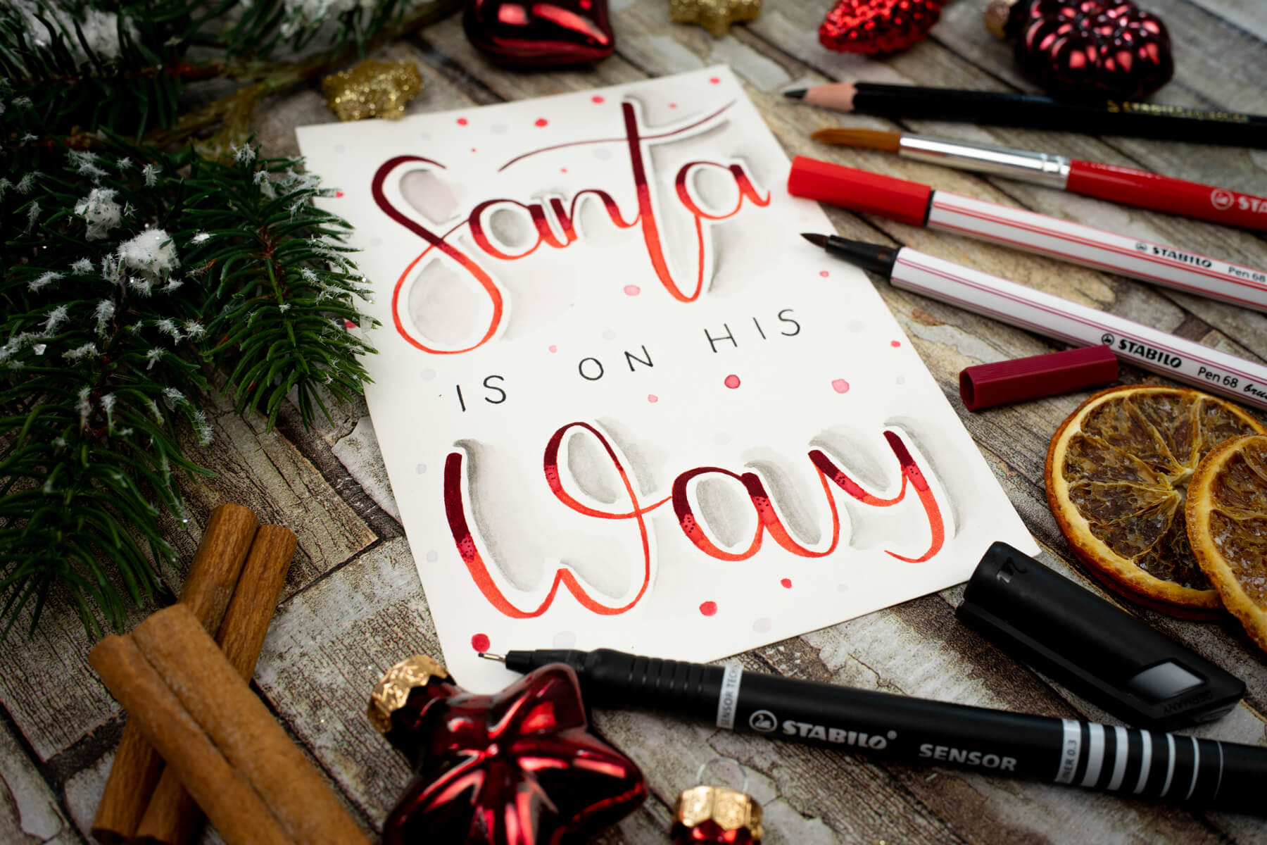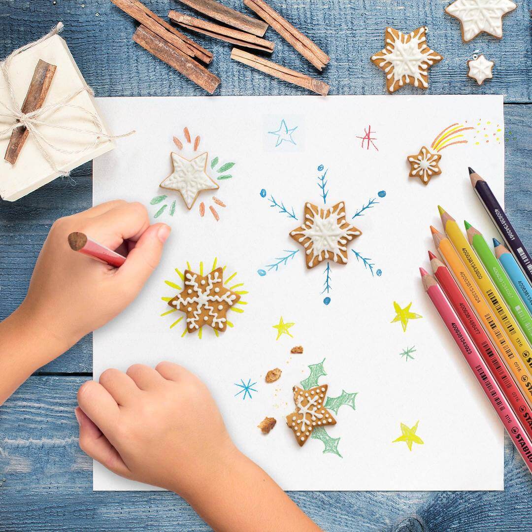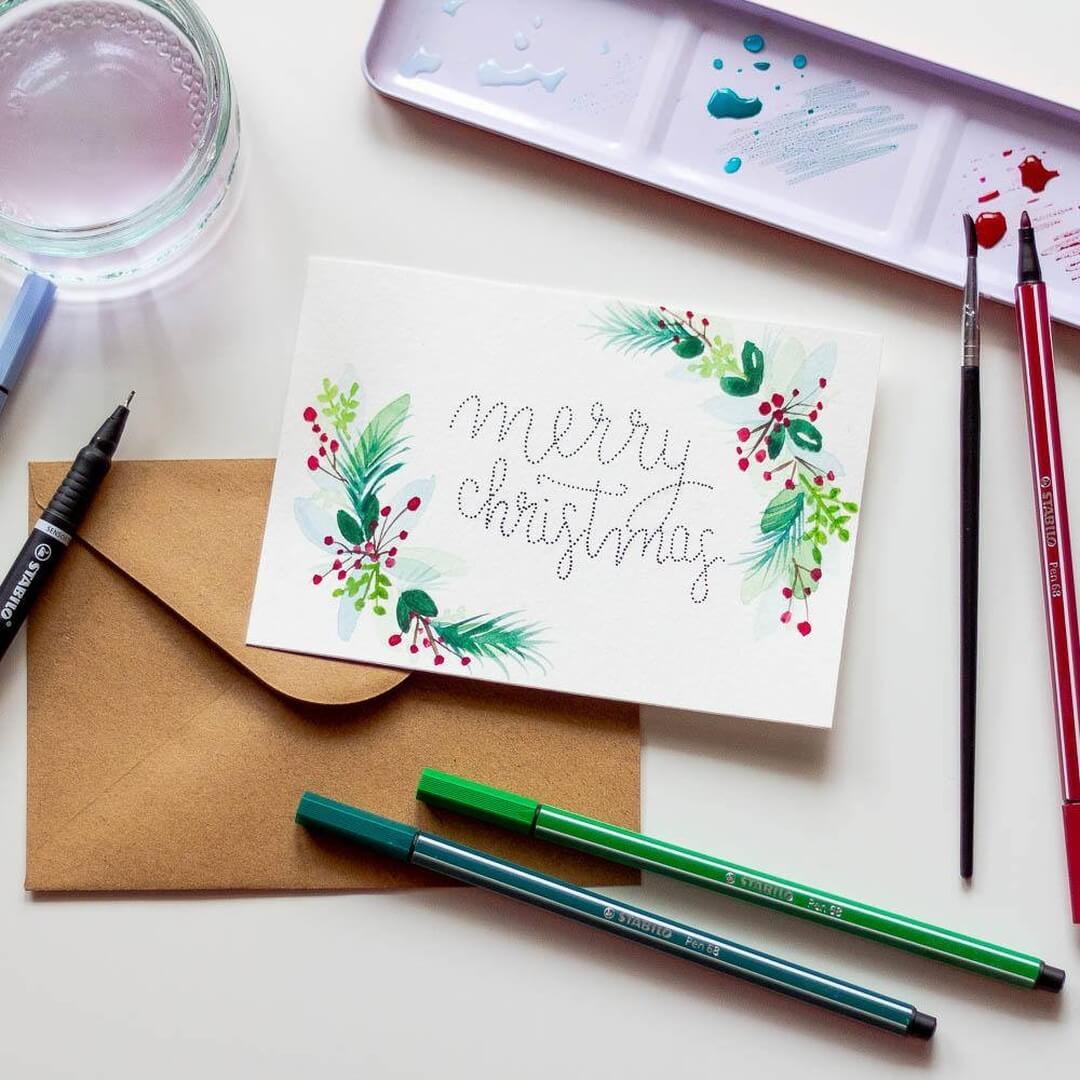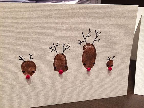 Je kunt ook een rendier tekenen en deze een 3D-neus geven van een bolletje wol. Of gebruik kerstkoekjes om je kerstkaart een 3D-effect te geven, zoals hieronder. Zo cute!