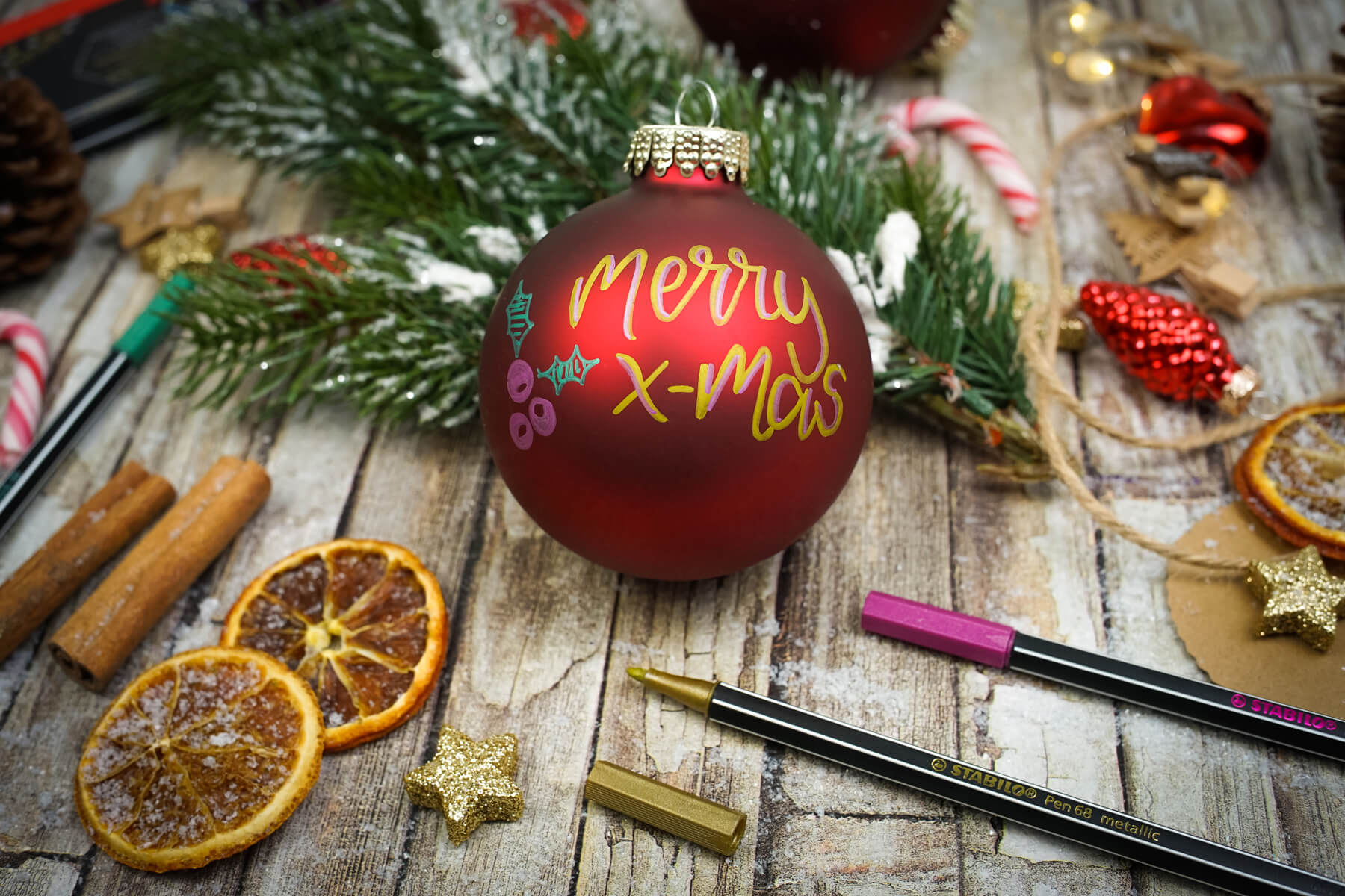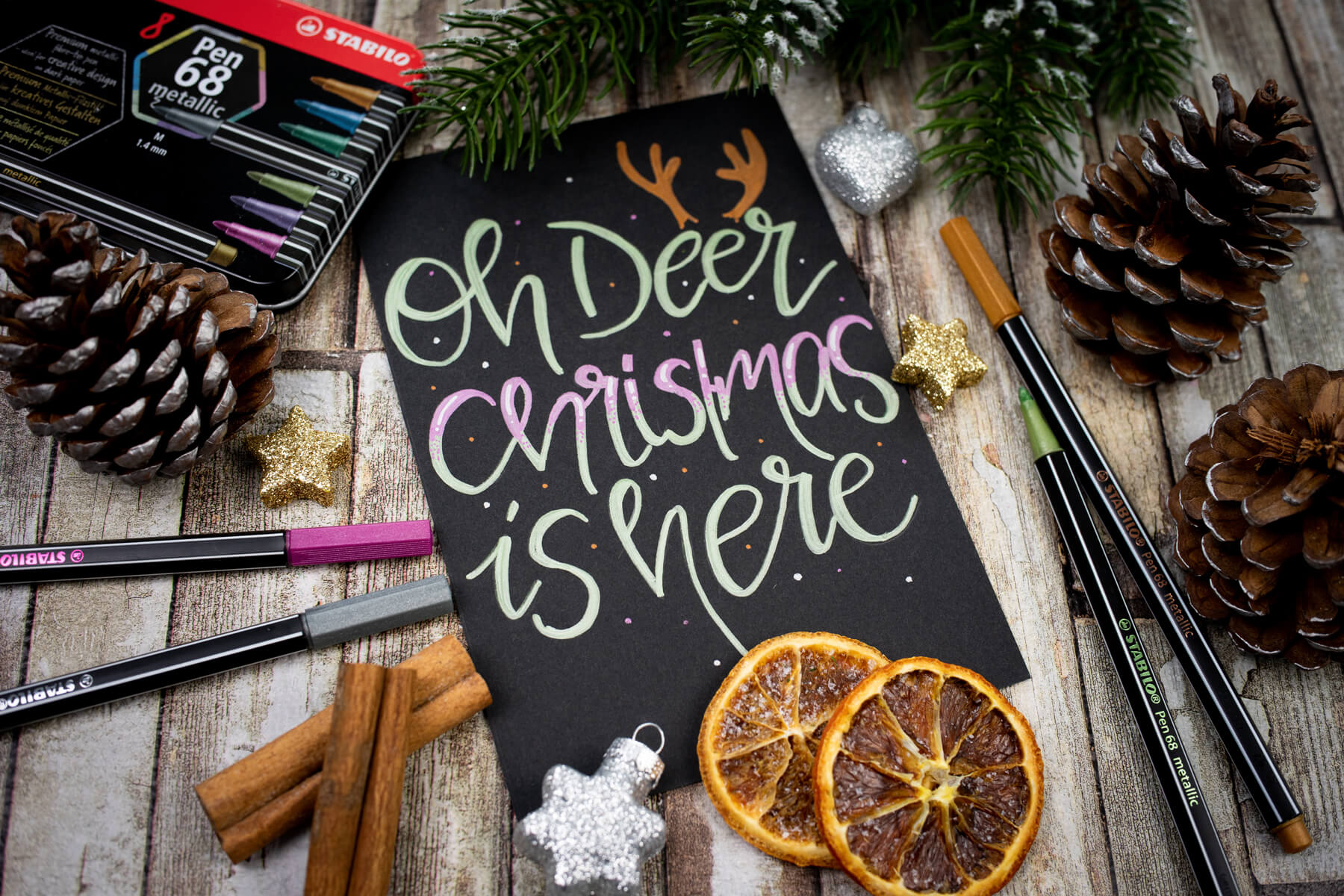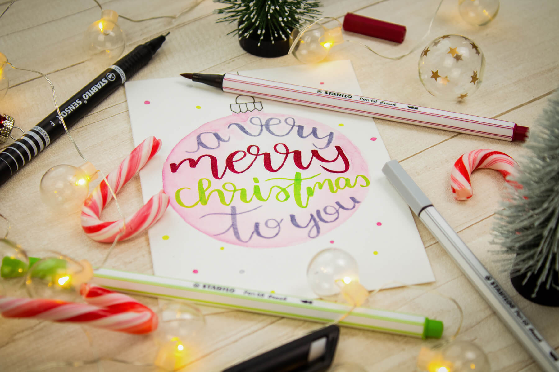 Je kunt ook een rendier tekenen en deze een 3D-neus geven van een bolletje wol. Of gebruik kerstkoekjes om je kerstkaart een 3D-effect te geven, zoals hieronder. Zo cute!