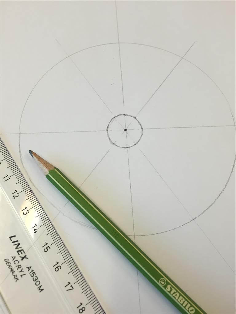 Teken nu een kleine cirkel in het midden van je grote cirkel, vlak bij het middelpunt.
