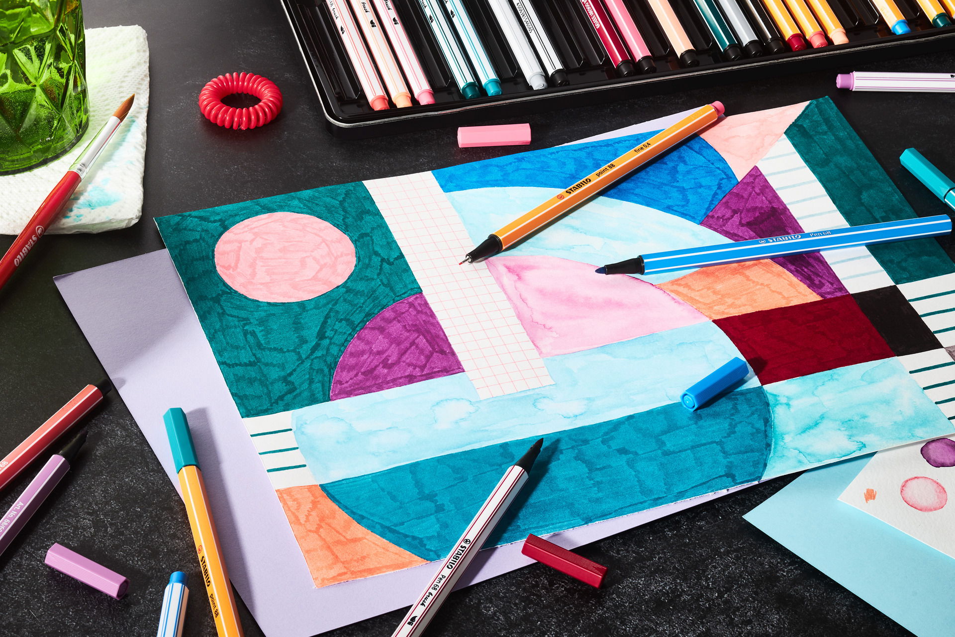 ARTY metalen etui met van ieder product 10 kleuren: STABILO Pen 68, STABILO point 88 en STABILO Pen 68 brush.