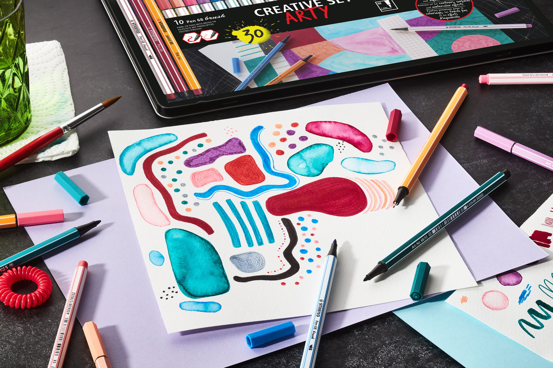 STABILO Pen 68 brush, Pen 68 en point 88 in 30 stuks metalen etui Creative Set ARTY Inhoud: 10 brushstiften, 10 viltstiften en 10 fineliners