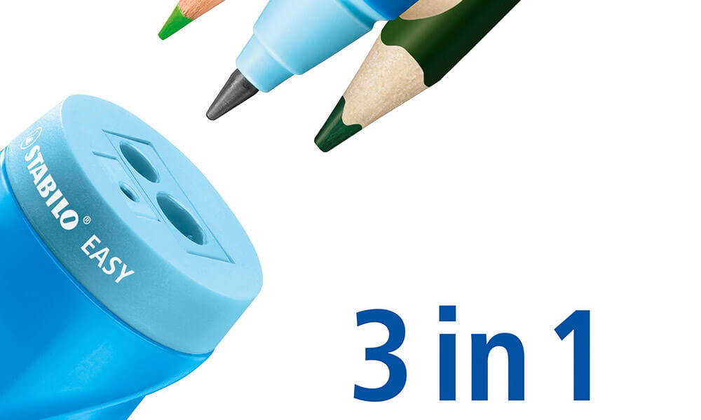 Temperówka STABILO EASYsharpener jest idealnym uzupełnieniem produktów STABILO EASYcolors, STABILO EASYgraph, STABILO EASYergo 3,15 i wszystkich cienkich ołówków drewnianych. Dostępna w wersjach dla prawo- i leworęcznych, jest w stanie naostrzyć przybory trzech różnych średnicach wkładów. Zaprojektowana przedszkolaków powyżej 5 roku życia i wszystkich starszych niezależnie od wieku - jej intensywne kolory rozjaśnią barwami każdy piórnik.