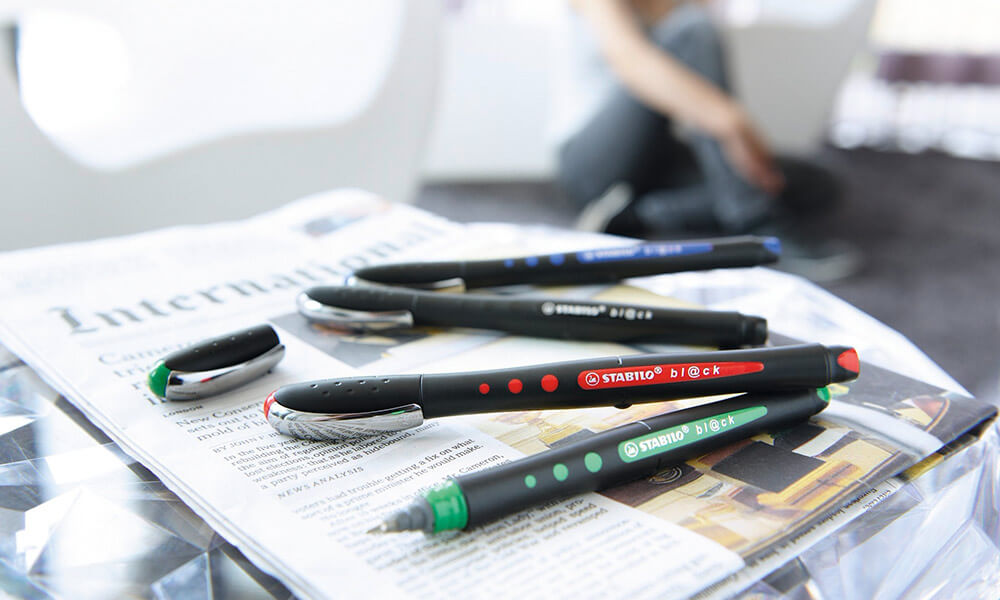 Pióro kulkowe STABILO bl@ck+ to kwintesencja nowoczesności, która idealnie leży w dłoni. Cała oprawka pokryta jest specjalna warstwą antypoślizgową, którą z powodzeniem wykorzystuje się w przemyśle motoryzacyjnym. Miękka powierzchnia sprawia, że pióro idealnie leży w dłoni i pozwala na absolutną kontrolę narzędzia bez żadnego wysiłku i przy minimalnym nacisku. Kulkowa końcówka ułatwia wypracowanie estetycznego, efektownego charakteru pisma przy zachowaniu imponującego tempa. Technologia ciekłego tuszu na bazie wody zapewnia wiele godzin pisania bez efektu drapania po papierze - i to w sześciu różnych kolorach: czarnym, czerwonym, zielonym, niebieskim, fioletowym i turkusowym. Dzięki temu STABILO bl@ck+ otwiera całkiem nowe możliwości dla kreatywnego pisma odręcznego. Pisać pięknie i czytelnie za każdym razem - to coś, co doceni z pewnością każdy student, nawet jeśli nie zdaje sobie z tego sprawy.