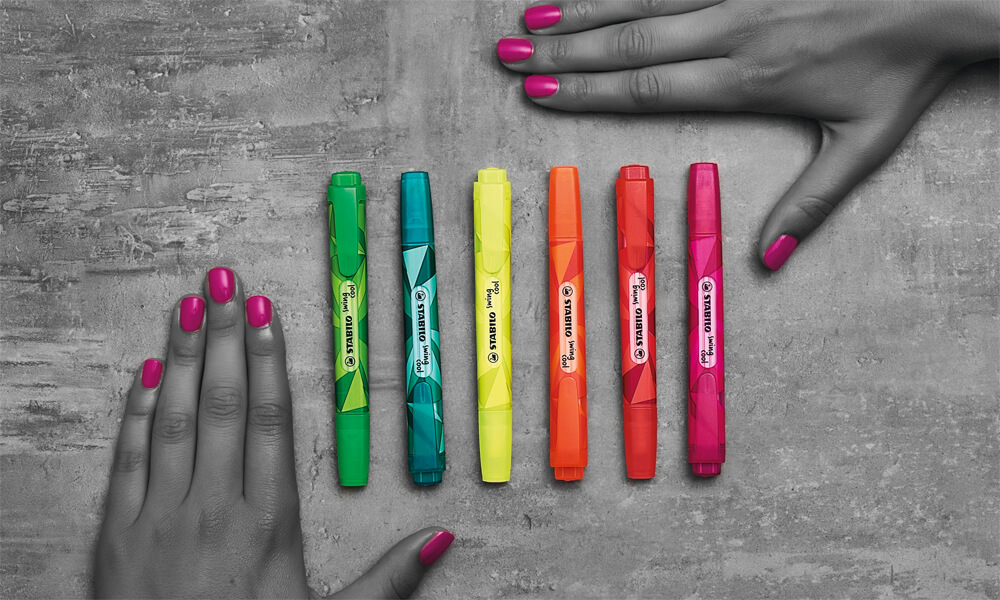 Nowy STABILO swing cool Colormatrix Edition to idealne rozwiązanie dla orientujących się w modzie nastolatków, studentów i wszystkich obdarzonych kreatywnym umysłem. Te kieszonkowe zakreślacze ozdobiony 6 modnymi geometrycznymi wzorami są dostępne tylko teraz! Wszystkie wyposażone są w praktyczne klipsy, zawierają tusz na bazie wody i oferują 2 grubości linii.