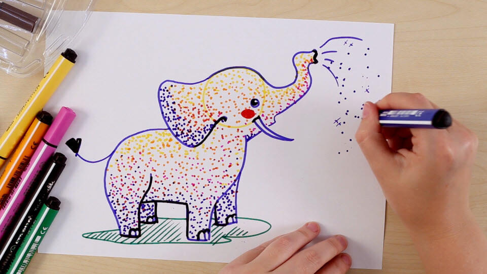 Слоны умные и удивительные, и после этого видео каждый сможет нарисовать его. Здорово, что теперь у нас также есть STABILO Trio Scribbi в цвете серый слон. Трехгранный фломастер с уникальным пружинящим наконечником, который невозможно сломать, и смываемыми чернилами, идеально подходит для маленьких художников-энтузиастов.