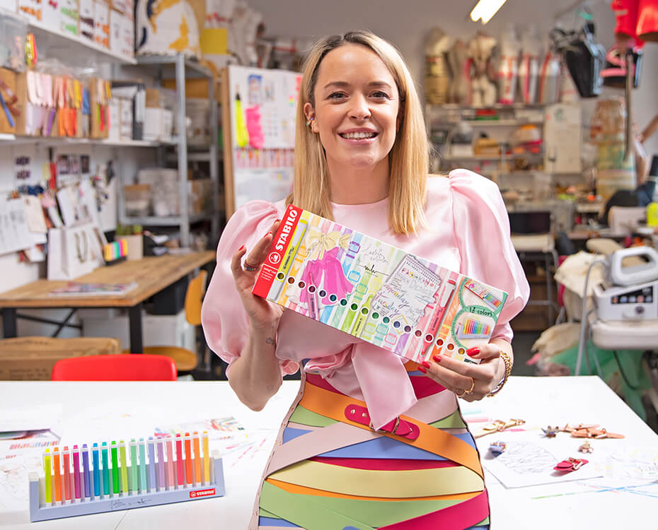 “Мне нравится использовать полную цветовую палитру в своих коллекциях, поэтому я и STABILO - отличная команда. Я также большой поклонник «счастья», которое излучает этот бренд. Позитив и креатив, окружающие его, сильно напоминают мне о моем собственном темпераменте." – Marina Hoermanseder