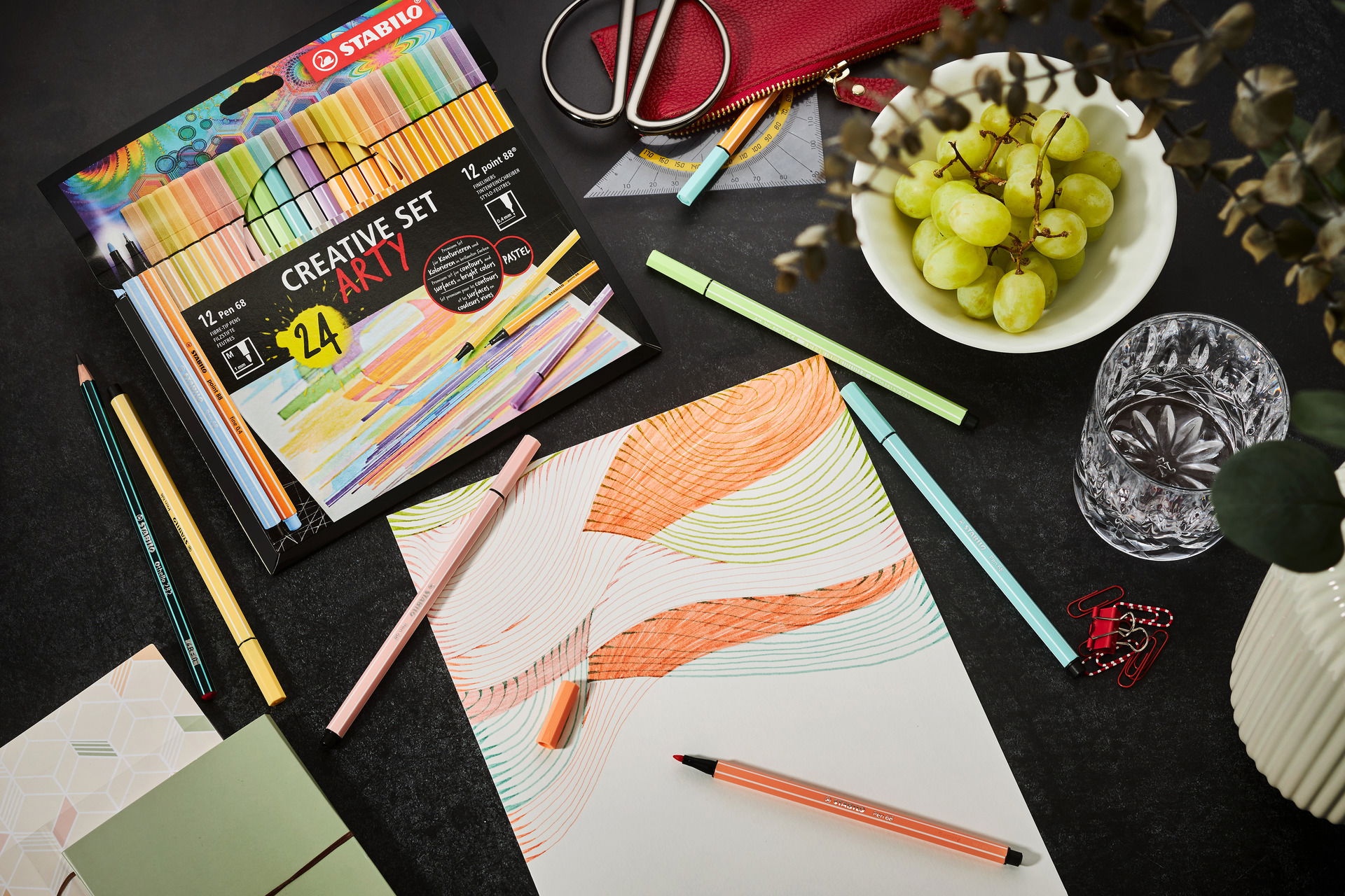 Nezameniteľný tvar, farba tela a tenká línia lineru STABILO point 88 sú známkou precíznosti a širokej škály farieb. Nie nadarmo je na trhu v Európe STABILO point 88 číslom jedna. Jeho hrot zasadený do kovového puzdra bol nespočetnekrát zdrojom skvelých nápadov a dômyselných myšlienok; či už v práci, v škole, v každodennom živote alebo vo chvíľach kreativity - STABILO point 88 je vašim dokonalým spoločníkom. Prémiová fixka STABILO Pen 68 je prísľubom nekonečnej kreativity – nie je divu, že dokonale ladí so súčasnými trendmi v Bullet Journalingu, náčrtoch alebo handletteringu. Priaznivci mandál, maľby a kresby sú nadšení z všestrannosti jeho kvalitného vláknového hrotu. Kreatívni a hobby umelci milujú veľkú rozmanitosť, ktorú STABILO Pen 68 poskytuje a vďaka ktorej je možné pestro realizovať každý nápad. Robustný hrot fixky zaisťuje rovnomerné nanášanie farby a je ideálny na kresbu výrazných čiar a na vyfarbovanie plôch. Vláknová fixka STABILO Pen 68 môže byť až 24 hodín ponechaná bez vrchnáčika bez toho, aby vyschla – čo je perfektné, ak váš kreatívny projekt zaberie viac času.