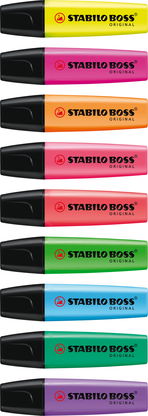 Zvýrazňovač pre všetkých, ktorí sa pri čítaní potrebujú sústrediť na to podstatné. Produkt STABILO BOSS ORIGINAL ponúka najvyššiu kvalitu spracovania, atramentu a pohodlia pri písaní. Technológia STABILO Anti-Dry-Out chráni štyri hodiny pred vysušením. Zvýrazňovač je možné doplniť náplňami STABILO BOSS.