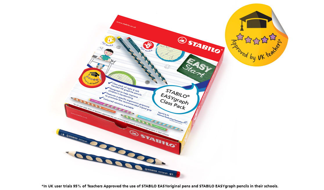 Our STABILO EASYgraph ergonomic pencils are available to buy as a class pack from our online shop.